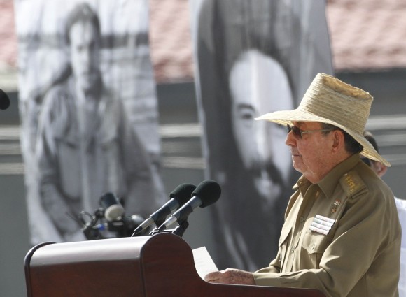 Queridos amigos y amigas: No se sorprendan de que sobre este uniforme verde olivo y el grado de General de Ejército, teniendo en cuenta que el mismo nació del ejército mambí, me ponga un sombrero mambí (Aplausos) y unos espejuelos oscuros, aunque me gusta mirar con claridad los ojos de mis interlocutores.
