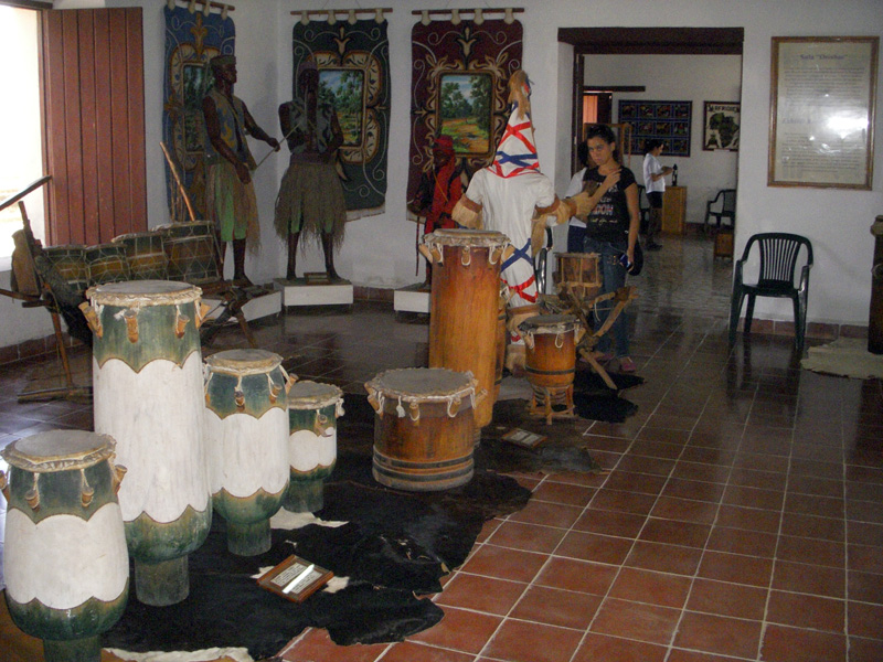El Museo de la Ruta del Esclavo expone una valiosa colección de tambores de origen africano, entre ellos los batá, yuca y de bembé.