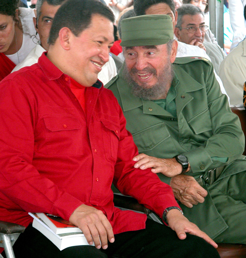 Fidel junto a Hugo Chávez y Evo Morales en acto por la Integración latinoamericana en la Plaza de la Revolución José Martí. Foto: Joaquín Hernández Mena