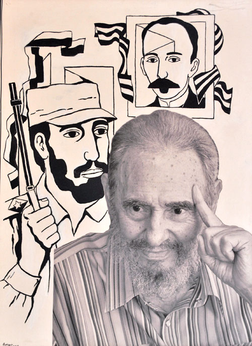 Fidel Castro debe ser uno de los hombres más fotografiados del mundo. De hecho, su devenir histórico bien podría ser contado con imágenes. En los últimos años (los años de su descanso) se han publicado o exhibido algunos retratos que le ha hecho su hijo Alex Castro. La Casa del ALBA Cultural (Línea y D, Vedado) presenta ahora una exposición integrada por recreaciones de esas y otras fotografías, hechas por algunas de las más destacadas figuras de las artes plásticas en Cuba.