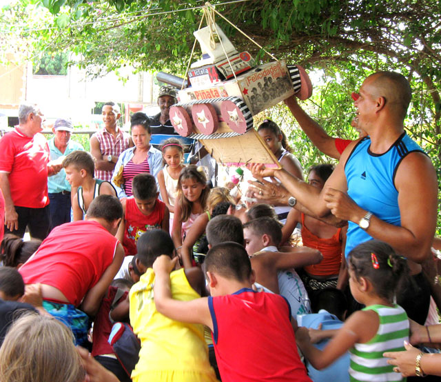 Su esposa retoma la conversación: “Cuando estaba terminando el avión, él me dijo que le ayudara y preguntó: ‘¿Vieja, y en el 2014 cómo hacemos la piñata?’. Le respondí que había bastante tiempo, pero no se conformó, comenzó a crear cosas para conmemorar el 88 cumpleaños del Comandante.”