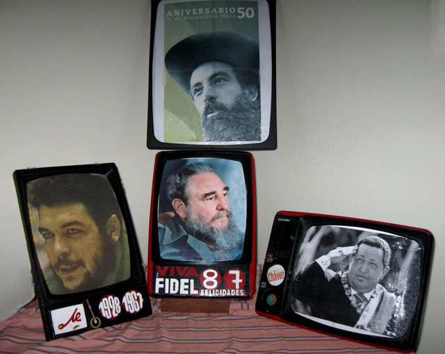 “Sí. ¿Que cómo lo hacemos?, enseguida le explico. Antes fíjese que mi casa es como un pequeño museo de la Revolución. Mire el retrato del Che, este otro de Camilo, el de Hugo Chávez… son estas fotografías mis tesoros, junto a las de mi familia.