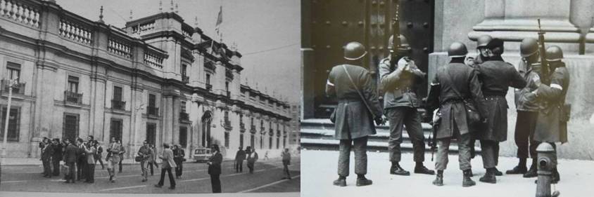También recuerda que antes de entrar a los sótanos de la plaza divisa en el perímetro a los tres tanques Sherman que disparaban sus ametralladoras contra el palacio de Gobierno. Dice que eran unos armatostes de la Segunda Guerra Mundial que Estados Unidos había donado al ejército chileno como parte de la renovación de material bélico, y a los aviones Hawker Hunter, sobrevolando.