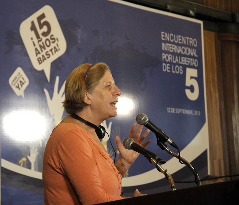 Una invitación a recorrer en bicicleta algunas ciudades de Estados Unidos para dar a conocer el caso de los Cinco antiterroristas cubanos, hizo la pacifista norteamericana Cindy Sheehan al intervenir en el Encuentro Internacional por la libertad de los Cinco ¡15 años, basta!, que se desarrolló este jueves en el Salón 1930 del Hotel Nacional de Cuba, en La Habana.