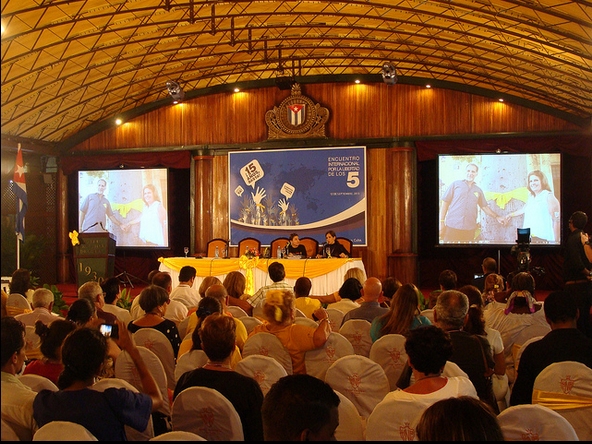 Al inicio de la sesión matutina se escucharon mensajes de Fernando González Llort y Antonio Guerrero. El primero expresa el pesar y dolor por el deceso del destacado luchador por la libertad de los Cinco, Saúl Landau, ocurrido precisamente en los días que se conmemoran los 15 años del arresto de los Cinco.