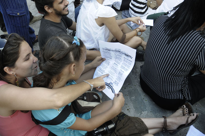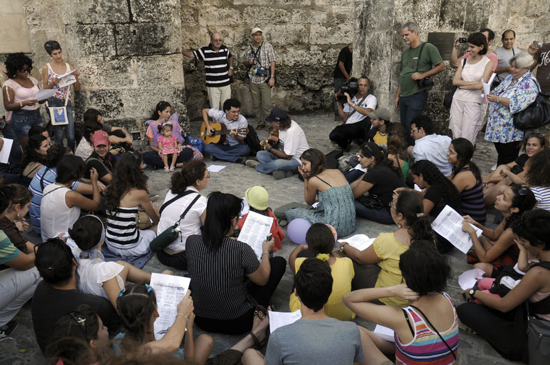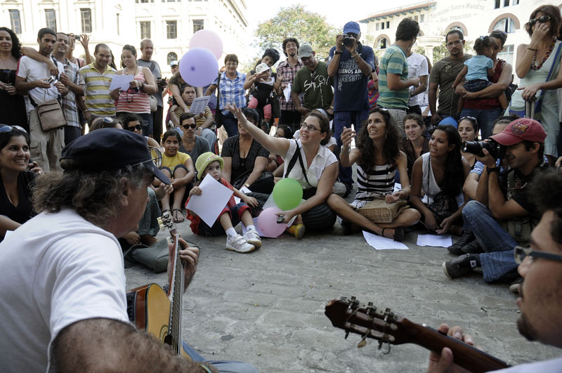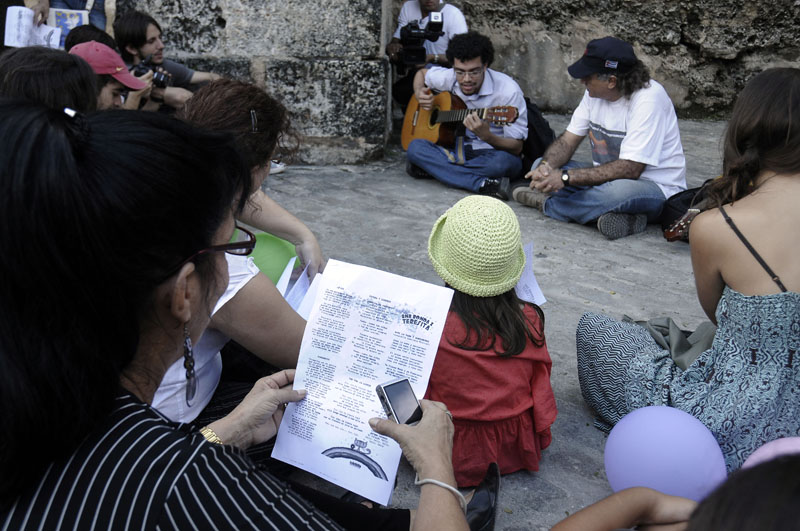 Siguiendo un anuncio lanzado desde las redes sociales, y a pesar de no contar con ningún otro mecanismo de difusión que no fuera Internet y el boca a boca, la gente convenció a otros amigos de ir, imprimió las letras de las canciones, llevó guitarras, cantó Lo feo y Pitusa y Eusebio, se dio de la mano y danzó una y otra vez.