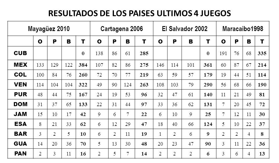 Eso significa que desde el comienzo dejaremos de pelear por 107 juegos de medallas. Es decir, habrá que ser mucho más eficiente en cada discusión de finales si pretendemos continuar en la cima en la tabla de posiciones por países, tal y como viene ocurriendo desde la edición de Panamá 1970, con las excepciones en El Salvador 2002 y Mayagüez 2010 por nuestras consabidas ausencias.