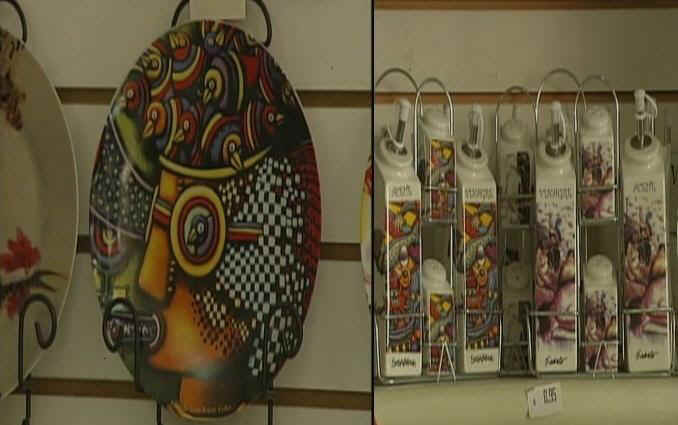 Aparecieron platos, abanicos, rompecabezas y otros objetos de uso cotidiano, estampados con obras de afamados pintores cubanos de diferentes generaciones.
