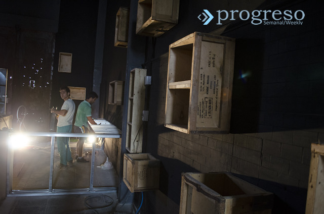 El gris ambiental y el tímido frío habanero rodean la conversación. También un ir y venir: voces de hombres redimensionadas por el eco, clavos contra el hierro, taladros. La pequeña concretera que en el patio no se detiene logra un background particular. Son las adecuaciones finales para convertir una antigua fábrica de aceite, espléndida sobre todo por su chimenea de ladrillos rojos, en el Vedado, en una incubadora creativa.