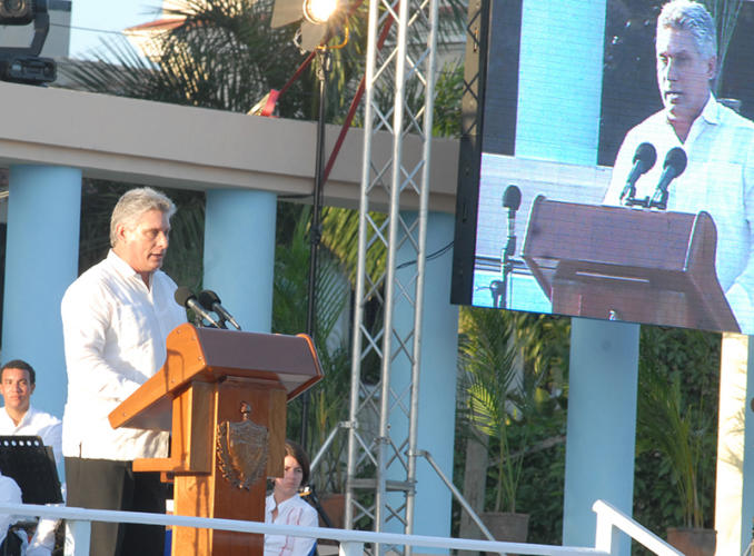 En las palabras centrales, Díaz Canel aseguró: “Tenemos un sano orgullo por lo logrado y rendimos un permanente homenaje a los que abrieron el camino cuando parecía imposible, a Fidel y a Raúl, Camilo, Che y Almeida, a los Comandantes de la Revolución y del Ejército Rebelde, a los combatientes del llano y la Sierra, a Frank, Vilma, Celia, Haydée, Melba y a las Marianas”.