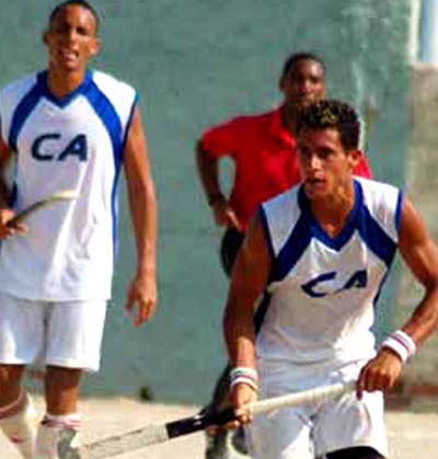 Foto única: El anfitrión Fernando Gómez, en primer plano, brilló en la jornada inaugural. (Foto: Edelvis Valido Gómez) Guía: Hockey, foto única