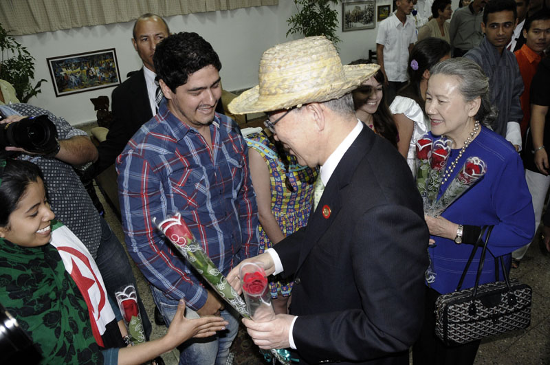 Puso como ejemplo que por esas ansias de aprender él llegó a secretario general de la ONU, y les dijo a los estudiantes que eso es lo que el gobierno cubano les está brindando, por lo que deben aprovechar la oportunidad y trabajar con la ONU para hacer del mundo un lugar más saludable.