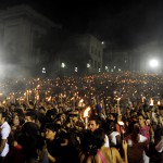 Entre júbilos y consignas en un convite a luchar por la libertad se encendieron las primeras llamas desde la escalinata universitaria.