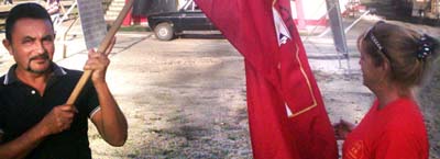 Flor María Márquez, delegada a la magna cita, entregó el estandarte a Hugo Companioni Espinosa, secretario general del Buró Sindical de la UEB, quien afirmó que “nuestra unidad cerró el pasado año con una ganancia de 1 millón 904 mil 400 pesos, pues aquí estamos en el centro de la batalla principal, la economía es un tema permanente en las asambleas de afiliados”.