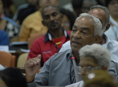 Habló como el santiaguero nato que es y como el profesor de filosofía que fue, en la comisión 1 del XX Congreso obrero donde se debate el funcionamiento sindical, pero esta vez desde la perspectiva de un trabajador no estatal, quien tiene la responsabilidad de ser dirigente de una organización de base de este tipo que agrupa 25 miembros.