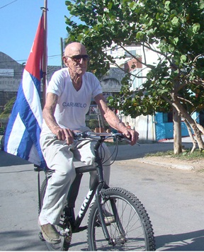 No es uno de los jóvenes atléticos y fuertes que hacen la Vuelta a Cuba, ni fue ciclista en sus años mozos; a primera vista parece una persona endeble, pero en las frases de una conversación se revela al hombre intrépido y optimista que desdeña su casi centenar de años con metas irrealizables para el común de los mortales.