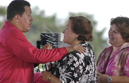 El Presidente de la República Bolivariana, Hugo Chávez Frías, saluda a Aleida March y a Aleidita Guevara, viuda e hija respectivamente del Che durante el programa «Aló Presidente» realizado en la Plaza Che Guevara en la provincia Santa Clara. Foto: René Pérez Massola.