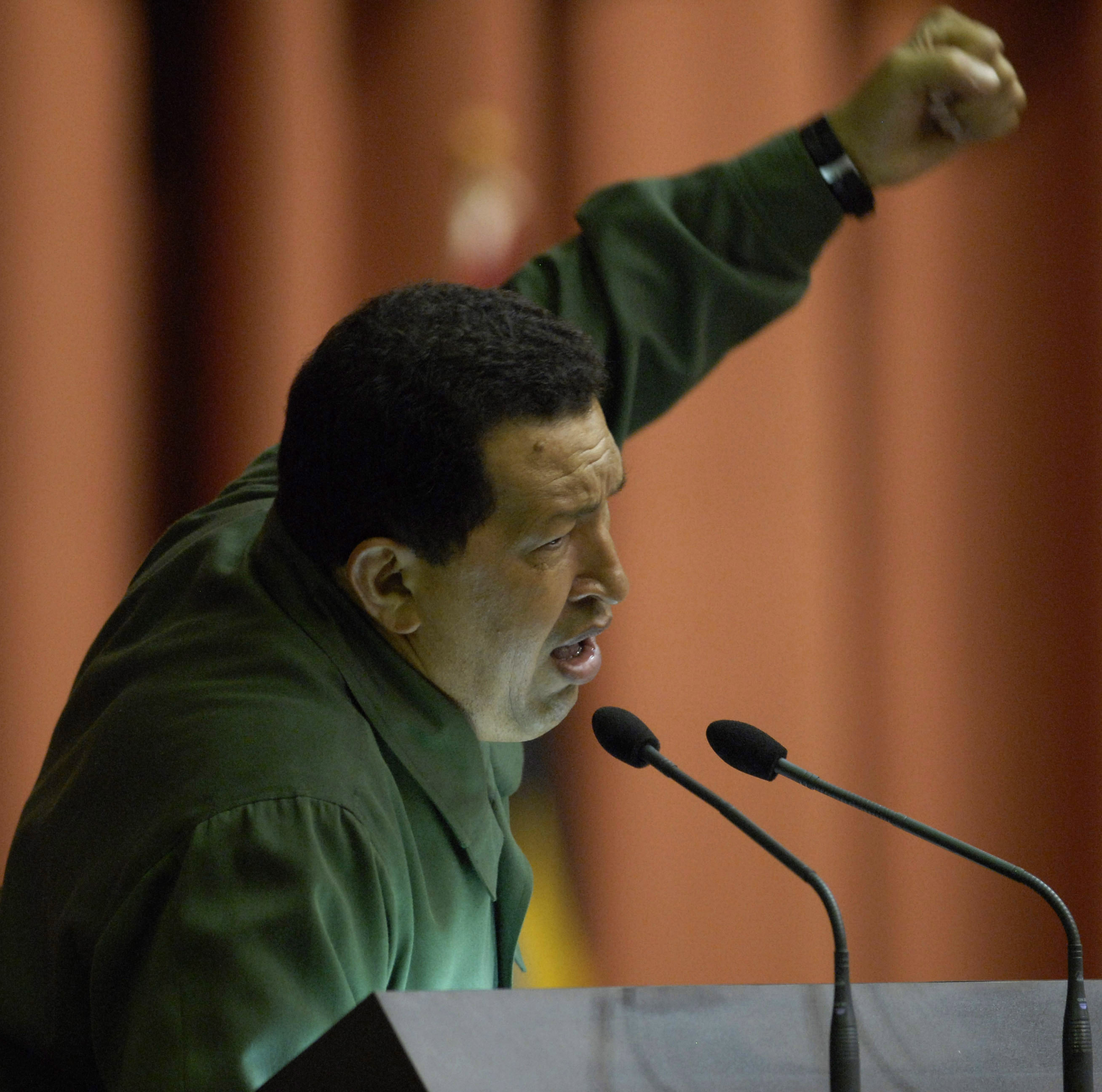 El Presidente de la República Bolivariana, Hugo Chávez Frías, durante el programa «Aló Presidente» realizado en la Plaza Che Guevara en la provincia de Santa Clara. Foto: René Pérez Massola.