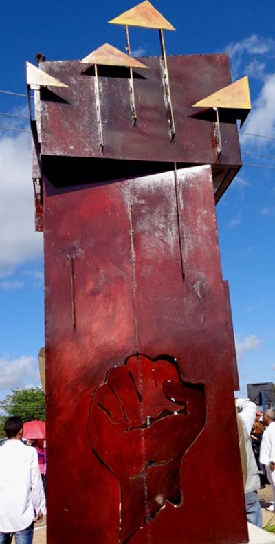 Durante la jornada Irma y Ariel Santana Santiesteban, miembro del Comité Central del Partido Comunista de Cuba y su primer secretario en la provincia, develaron una escultura monumental que denota el valor de la unidad y sembraron a su alrededor árboles de caguairán y roble con tierra procedente de sitios vinculados con la historia de Cuba.