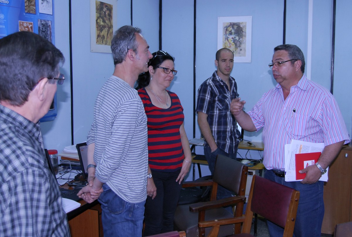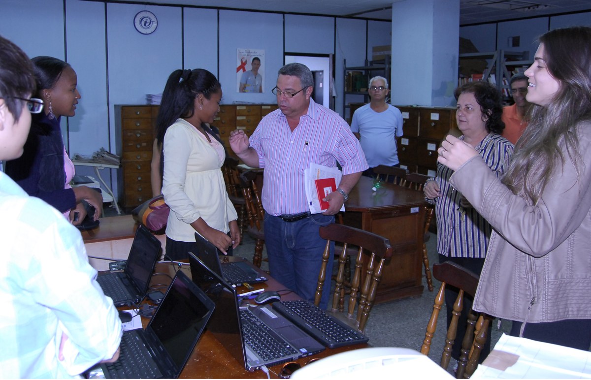 En su recorrido por los equipos de trabajo felicitó y dialogó brevemente con periodistas, fotógrafos y estudiantes que realizan su adiestramiento en la publicación o enriquecen aquí sus futuras tesis de graduados.