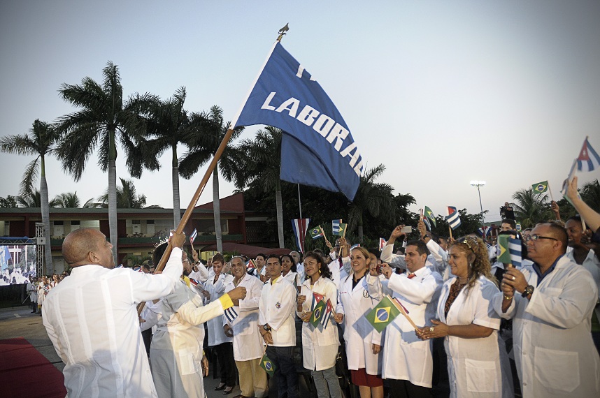 En la despedida al último grupo de galenos que completará la brigada de 11 mil 430 especialistas cubanos que integrará el Programa Más Médicos para Brasil, se entregó la Bandera Proeza Laboral a la Unidad Central de Colaboración Médica, por garantizar con eficacia y calidad durante 28 años, el cumplimiento de los compromisos de nuestro gobierno con la cooperación internacional.