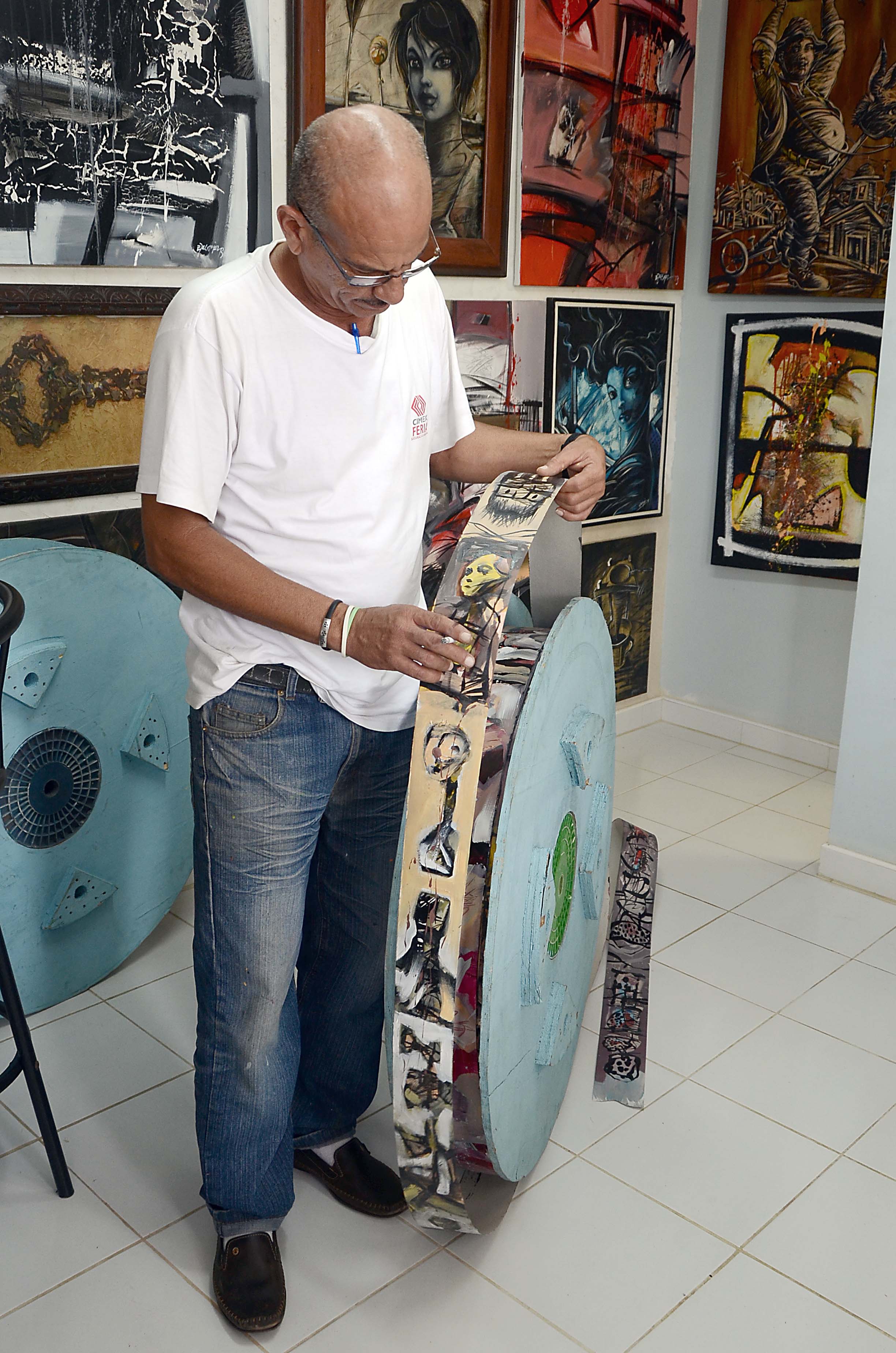 Ahora, empeñado en una Obra que él ha denominado “Sin Limites” pues pinta en tiras de 10 centímetro de ancho que va empatando, y hasta la fecha lleva un poco más de 1,2 kilómetros. Al preguntarle cuando terminaría, respondió: Cuando deje de pensar, tal como la titulé, “sin limites”.