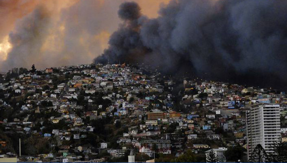 La llegada de la luz diurna ha permitido el despliegue de una docena de aviones y helicópteros para combatir el fuego desde el aire y también ha hecho posible dimensionar una catástrofe que ha arrasado cinco poblados de esta ciudad, donde viven unas 250 000 personas y también se encuentra el Parlamento y la Armada de Chile.