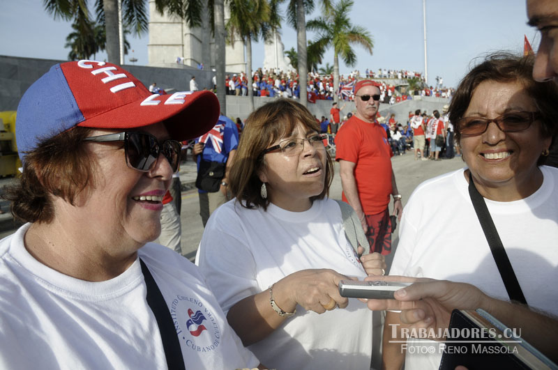 ¡Mira, mira… ahí va otra más!, exclamó Inés Calderón mientras ondeaba sobre la multitud una bandera chilena. Daba brinquitos en el lugar y con el dedo índice apuntaba hacia adelante sin asomo de fatiga. Desde la explanada de la Plaza de la Revolución, justo bajo la mirada del Apóstol, centenares de visitantes extranjeros observaron el desfile de los trabajadores cubanos.