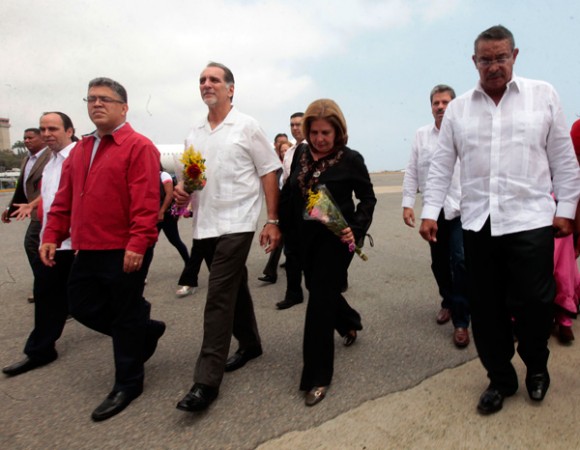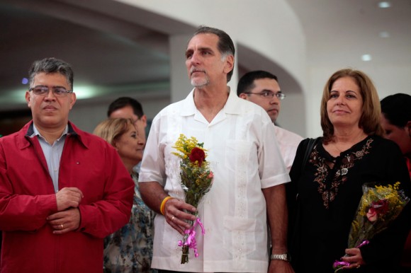 René González arribó la mañana de este lunes al Aeropuerto Internacional de Maiquetía Simón Bolívar, donde fue recibido por el canciller de la República, Elías Jaua.