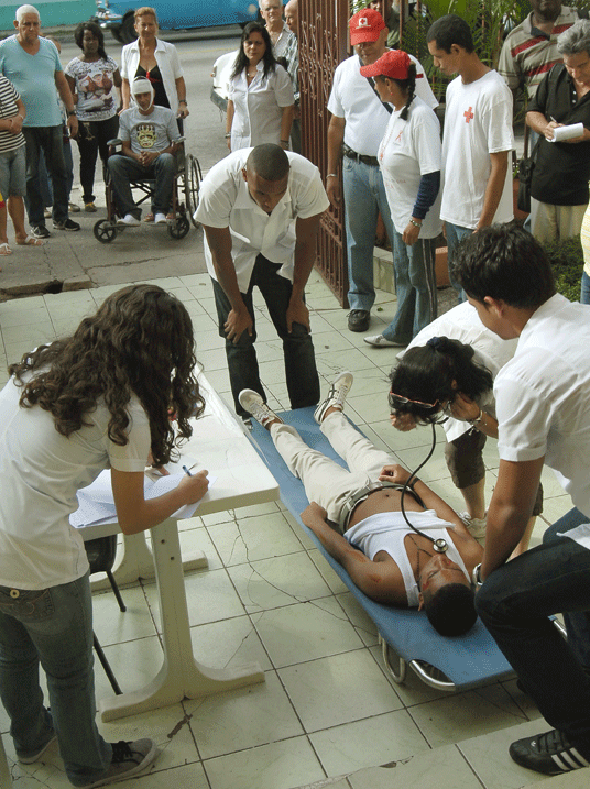 De igual manera, también en Plaza de la Revolución, y como parte del ejercicio, el policlínico Moncada realizó una preparación del personal con vistas a la recepción masiva de heridos a causa de un desastre natural. Para ello, lo primero es la clasificación de los pacientes, y luego su traslado a las diferentes áreas, según lo defina el estado de salud.