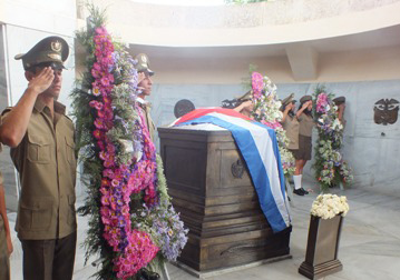 En el mausoleo que guarda sus restos en el camposanto santiaguero también fue colocada una ofrenda en nombre del Consejo de Estado y de Ministros de la República de Cuba y estudiantes de la escuela militar Camilo Cienfuegos de la provincia de Camagüey, además de cadetes de la escuela militar superior comandante Arides Estévez Sánchez, rindieron guardia de honor al Héroe Nacional.