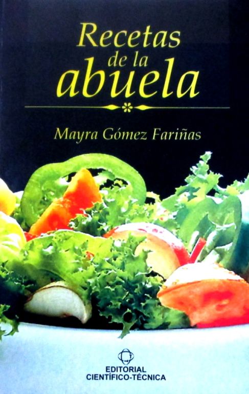 Recetas de la abuela (Editorial Científico-Técnica, 2013, 190 pp) es el título de ese libro, en que su autora explica, en lograda síntesis, la manera de preparar entrantes, bocaditos, salsas, mojos, fritos, ensaladas, potajes, sopas, cremas, arroces y guarniciones, carnes, postres, bebidas y cócteles.