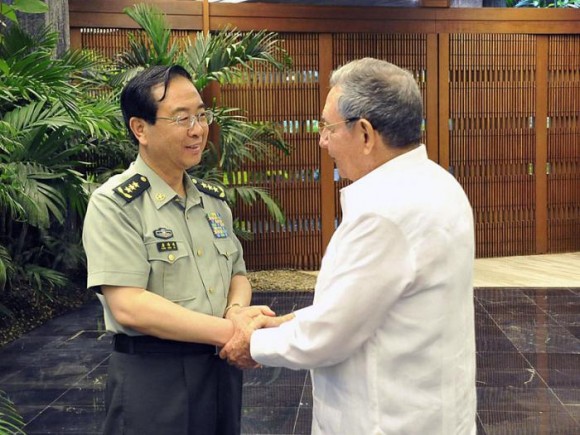 El General de Ejército Raúl Castro Ruz, Presidente de los Consejos de Estado y de Ministros, saludó en la tarde de este lunes al Coronel General Fang Fenghui, miembro de la Comisión Militar Central y Jefe del Estado Mayor General del Ejército Popular de Liberación de la República Popular China, quien realiza una visita oficial a Cuba por invitación del Ministerio de las Fuerzas Armadas Revolucionarias.