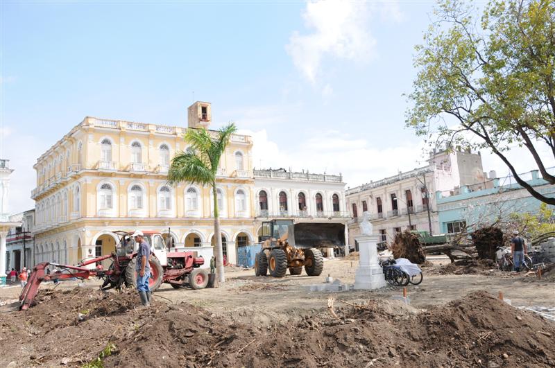 Ante las caras estupefactas y hasta inconformes de muchos espirituanos, el parque central de la ciudad fue cayendo hace meses en las “fauces” de no pocas máquinas que en nada compaginaban con el entorno acostumbrado. Aun cuando más de una vez llegaron a mis oídos las quejas: “Esto no parece un parque de provincia”, el levantamiento de la antigua estructura provocó una serie de criterios encontrados entre los pobladores, será por esa costumbre innata de generar opiniones inversas. Lo cierto es, que después de un tiempo angustioso para los que catalogaban la reconstrucción como una carrera contrarreloj, y una aventura para quienes echaron a volar la imaginación al hallarse restos de un convento debajo del Serafín Sánchez, hoy señorea una plaza que embellece como nunca el centro histórico de la villa.