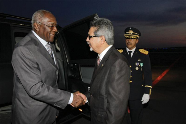 El vicepresidente cubano fue recibido por el vicecanciller salvadoreño, Carlos Castañeda, en el aeropuerto internacional .Monseñor Oscar Arnulfo Romero. Foto: http://charlotte.quepasanoticias.com