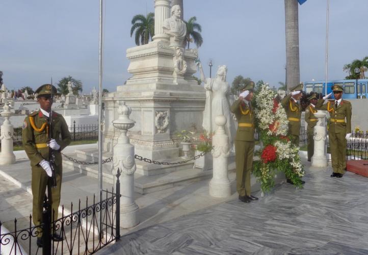En ocasión del Día de los padres, una representación de santiagueros y santiagueras, en nombre del pueblo cubano, rindieron honores a Carlos Manuel de Céspedes ante la tumba que guarda sus restos en el cementerio de Santa Ifigenia, en la ciudad de Santiago de Cuba.