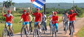 A la sede del Instituto Cubano de Amistad con los Pueblos (ICAP) llegó hoy junto a sus compañeros de viaje Adelson Mucueno, de Angola; Adriano Rodríguez, de Timor Leste; Julián Gutierrez, de Colombia, y Claudia García, de Cuba, vencidos ya los 200 kilómetros de ruta por localidades de La Habana y Artemisa.