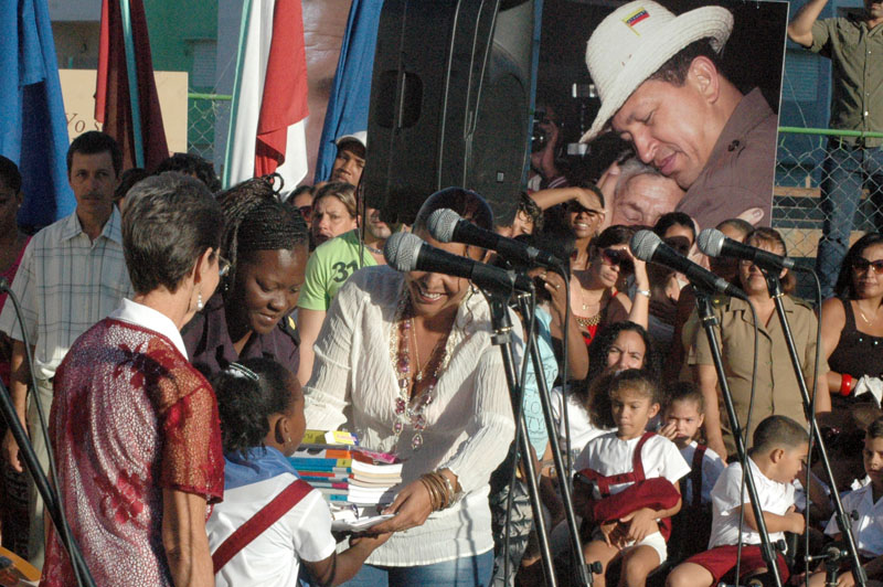 En la actividad político-cultural intervino la joven Eliannis Cruz, egresada de la primera graduación de la escuela pedagógica Fulgencio Oroz, ubicada en la capital, quien inicia su vida laboral en la Hugo Rafael Chávez Frías, consciente de su papel como educadora.
