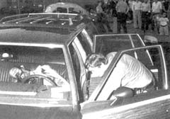 A las 6:29 de la tarde, el hombre ignora que su cuerpo está en línea con el alza, la mira y el cañón de una ametralladora MAC 10 parapetada varios metros detrás de su Pontiac. La luz roja del semáforo, a la par que permite una puntería perfecta, impide también la fuga precipitada después de halar el gatillo. Ya los sicarios conocen su rutina. Deciden esperar unos segundos.