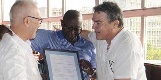Julián González, ministro de Cultura, hizo entrega de la misiva a Miguel Iglesias, director del DCC, quien agradeció tan alto honor y dio a conocer el plan de giras nacionales y extranjeras de esa compañía a nivel nacional e internacional.