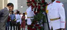El dignatario africano depositó una ofrenda floral ante el monumento dedicado al prócer de la independencia cubana, en el memorial que lleva su nombre, en esta capital, donde también recibió detalles de la vida y obra del Maestro.