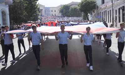 Más de 30 mil niños, adolescentes y jóvenes marcharon hoy en esta capital por Cuba, la Humanidad, el Socialismo, una paz justa y plena para todos los pueblos y el fin de la sinrazón que mantiene prisioneros a tres compatriotas, condenados por combatir el terrorismo.
