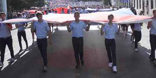 Más de 30 mil niños, adolescentes y jóvenes marcharon hoy en esta capital por Cuba, la Humanidad, el Socialismo, una paz justa y plena para todos los pueblos y el fin de la sinrazón que mantiene prisioneros a tres compatriotas, condenados por combatir el terrorismo.