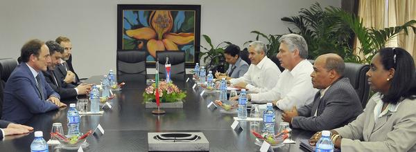 El Primer Vicepresidente de los Consejos de Estado y de Ministros, Miguel Díaz-Canel Bermúdez, recibió en la mañana de este lunes al excelentísimo señor Paulo Portas, Viceprimer Ministro de la República Portuguesa, quien realiza una visita oficial a Cuba acompañado de una importante delegación empresarial que participa en la Feria Internacional de La Habana, en cuyo marco sesionó el foro empresarial Cuba-Portugal.