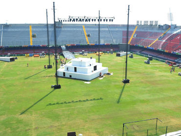 En el estadio Luis «Pirata» Fuente avanzan los preparativos para la fiesta del viernes en la noche. Según la agencia de prensa Notimex decenas de trabajadores atienden cada detalle organizativo, para garantizar orden, seguridad y el mayor confort de los asistentes.