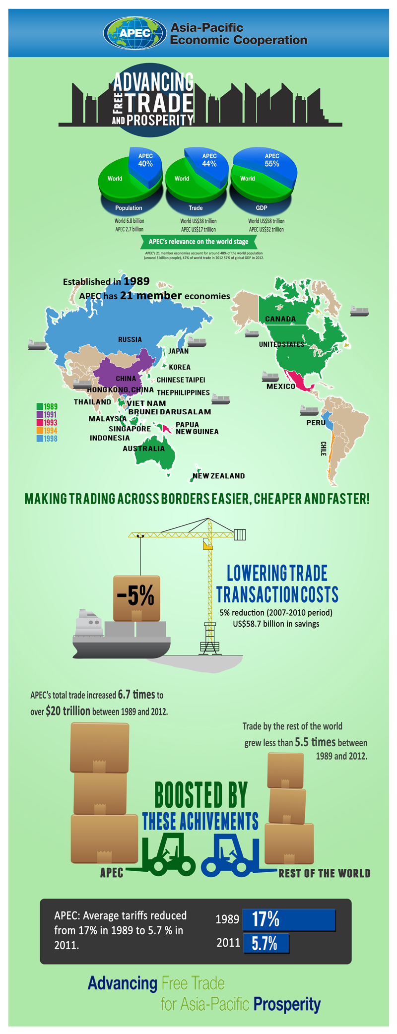 La iniciativa de la APEC pudiera frenar al TPP, aunque este no sea su objetivo como se plantea. Los miembros del Foro producen de conjunto alrededor del 57 % de la riqueza del planeta y realizan el 44 % de los intercambios comerciales.