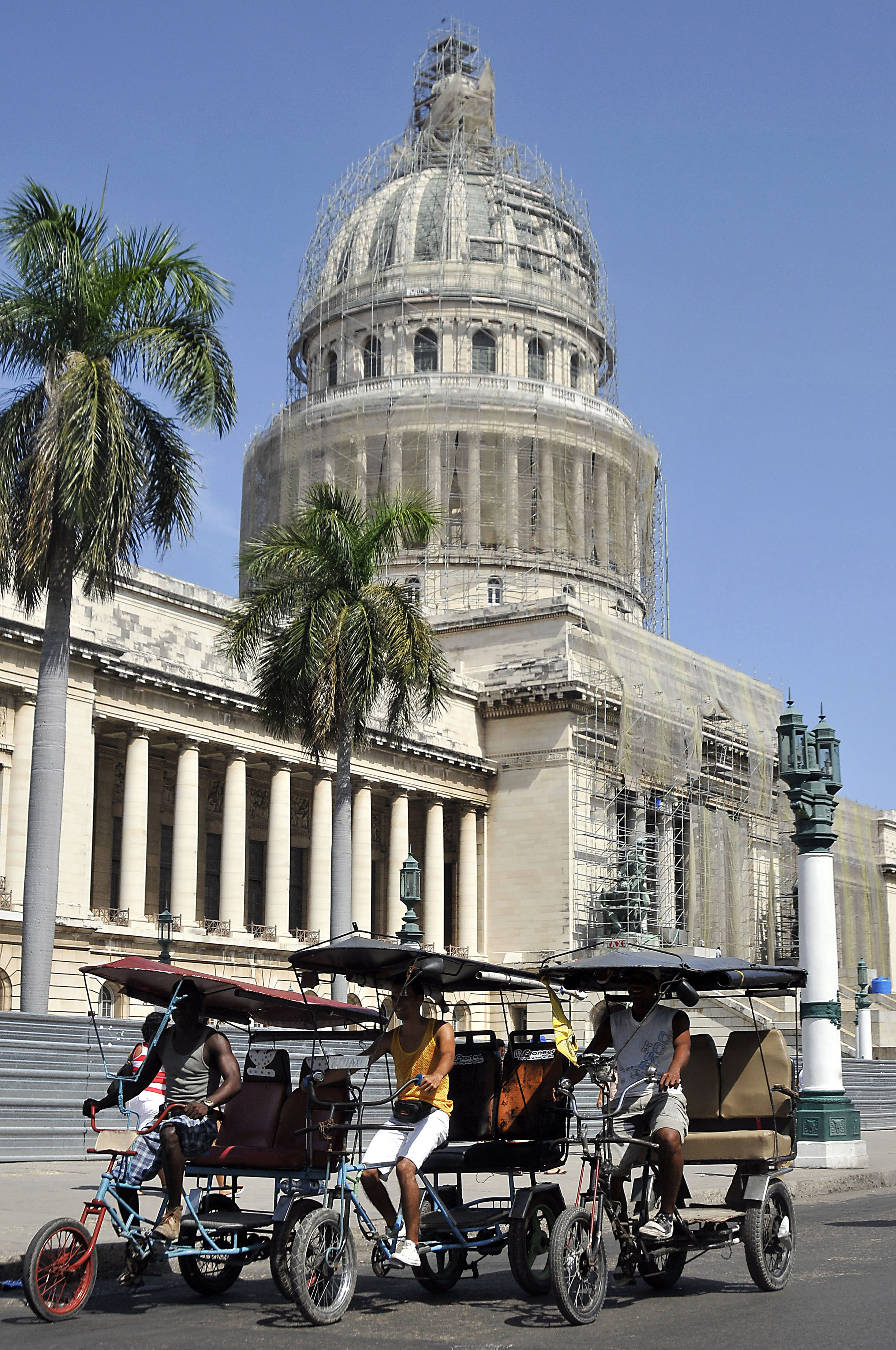 El Capitolio Nacional, actualmente en reparación, en una vista desde el Parque de la Fraternidad Americana, otro sitio emblemático.