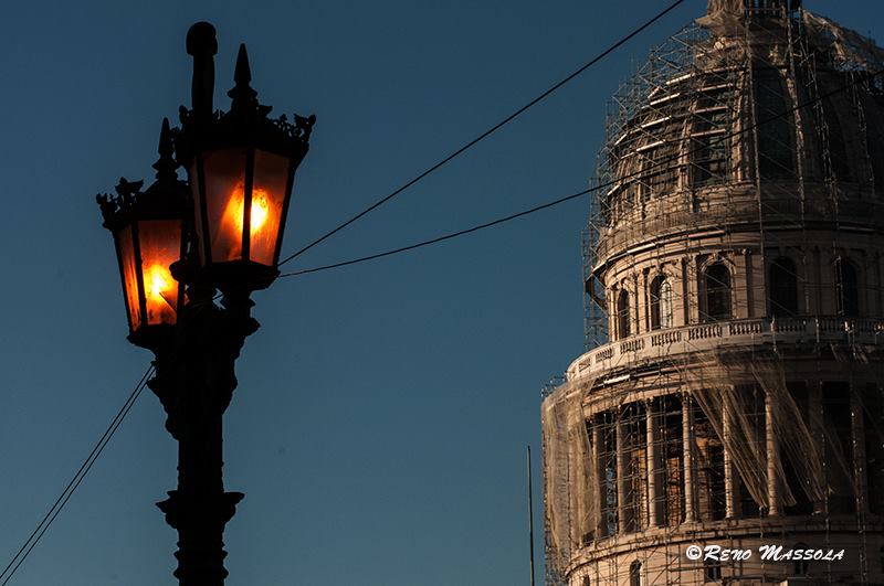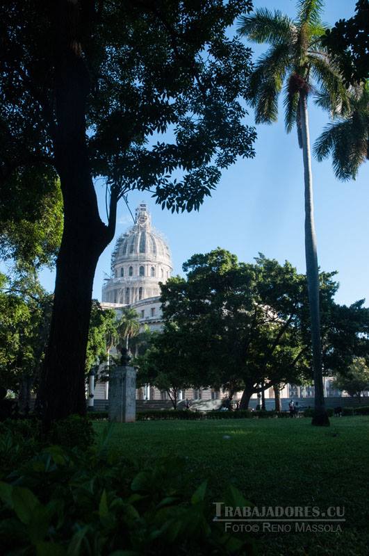 El Capitolio Nacional, actualmente en reparación, en una vista desde el Parque de la Fraternidad Americana, otro sitio emblemático.