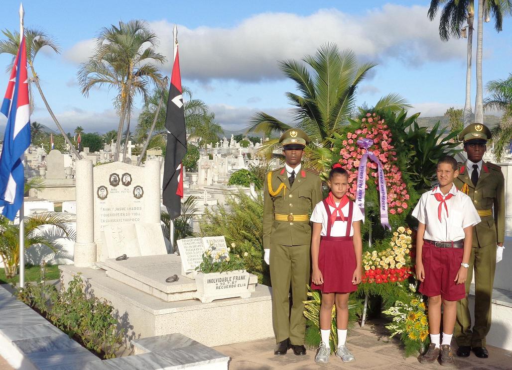 Junto a la tumba del Jefe de Acción del Movimiento 26 de Julio, en la que también reposan sus padres Francisco País y Doña Rosario, además de su hermano Josué, fue colocada una ofrenda florar en nombre del pueblo santiaguero, y se guardó un minuto de silencio en honor al intrépido combatiente, quien entregó su vida por la libertad de la patria con tan solo 22 años.