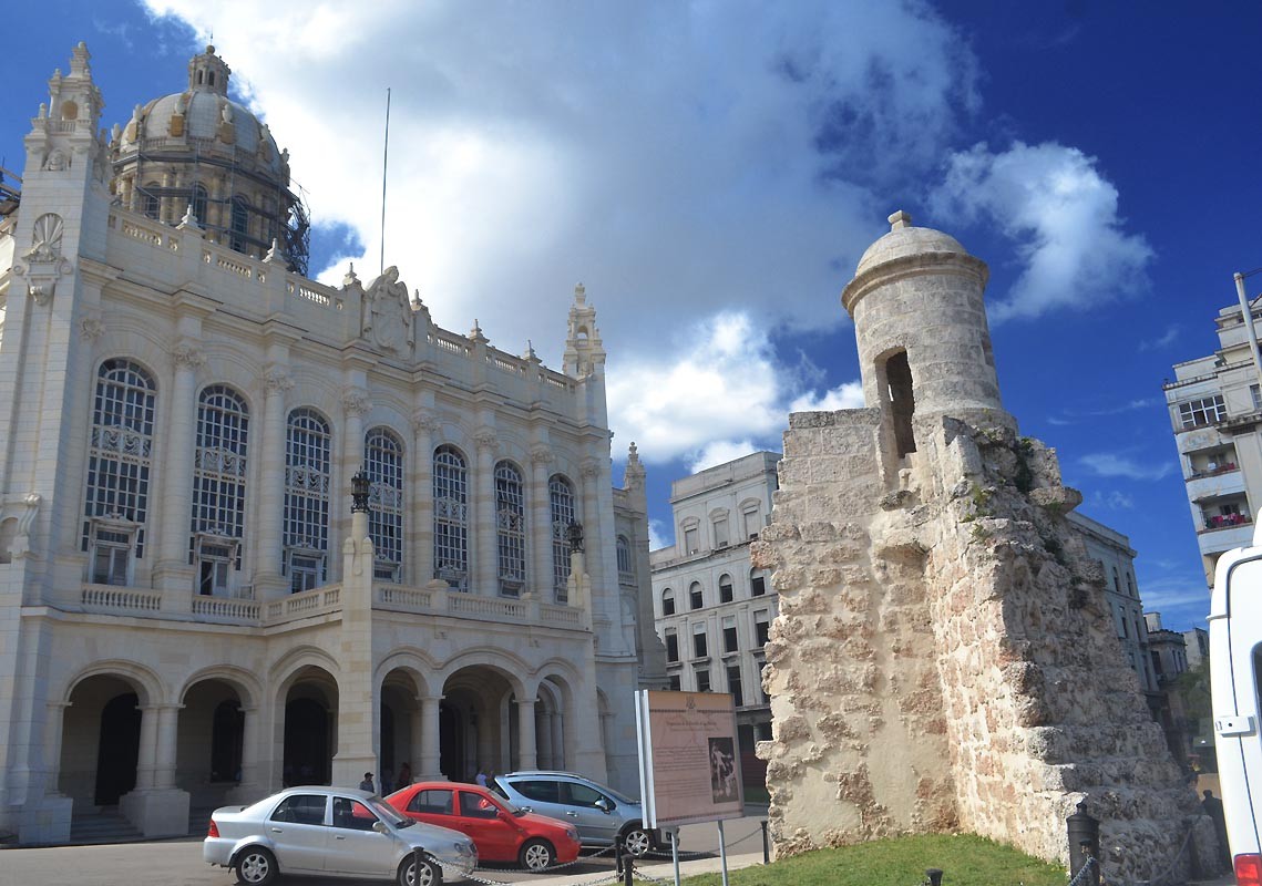 1 A escasos metros de la entrada de la bahía de La Habana, se levanta el edificio de estilo ecléctico que de 1920 a 1965 fungió como sede del Palacio Presidencial, y desde enero de 1974 acoge al Museo de la Revolución. Al frente, el fortín del Ángel, resto de la muralla levantada por el régimen colonial español en torno a la ciudad.
